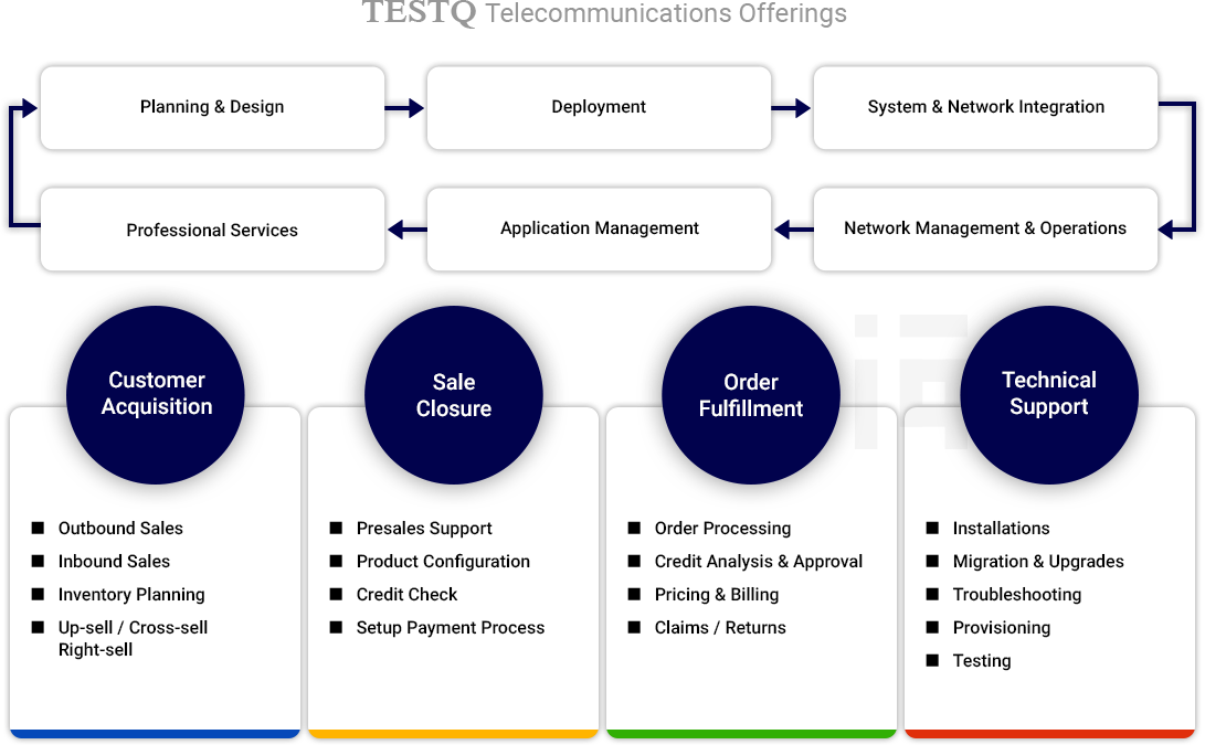 The TESTQ Telecom Enterprise solution focuses on the key areas like: